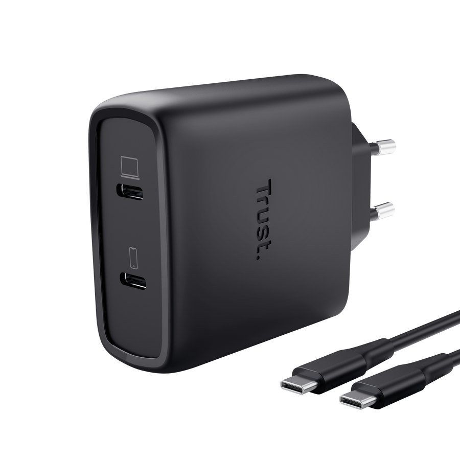 CARGADOR PARED/VIAJE 2xUSB-C 65W MAXO NEGRO TRUST