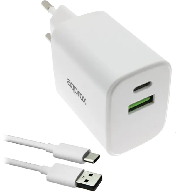 CARGADOR USB DE VIAJE/PARED 1xUSB/USB-C + CABLE USB-A A USB-C 35W BLANCO APPROX